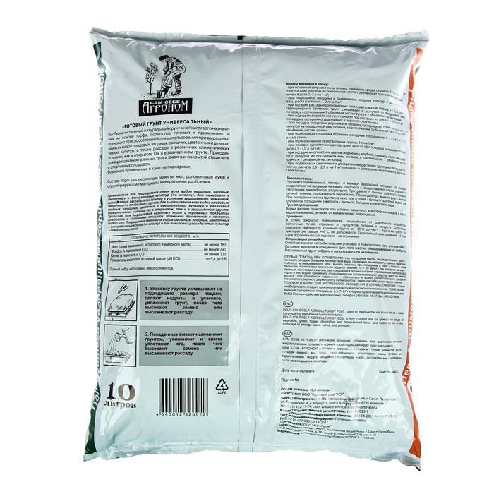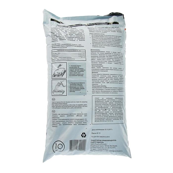 Высококачественный натуральный грунт многоцелевого назначения на основе торфа, полностью готовый к применению и прекрасно приспособленный для использования при выращивании рассады всех видов плодовых, ягодных, овощных, цветочных и декоративных культур открытого и защищенного грунта. Обеспечивает оптимальные условия для повышения всхожести семян, лучшей приживаемости рассады, улучшения эстетических качеств цветочных и декоративных культур. Возможно применение в качестве подкормки.