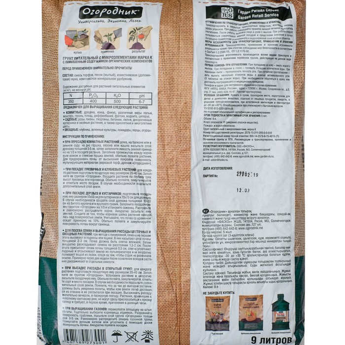 Универсальный грунт для выращивания и подкормки рассады овощных и зеленных культур, а также цветов; проращивания семян; пикировки и последующей высадки в открытый грунт; обогащения верхнего слоя почвы.