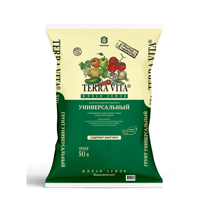 Полностью готовый питательный грунт Terra Vita применяется для выращивания всех видов овощных и ягодных культур, цветов и рассады. Улучшает всхожесть семян, приживаемость рассады. Повышает урожайность и качество овощей и плодов. Обеспечивает ускорение роста, развития и созревания овощей и корнеплодов, получение высокого урожая. Улучшает вкусовые и питательные свойства продукции. Восстанавливает плодородие и естественный биоценоз почв. Преимущества:Грунт полностью готов к использованию.100% натуральные компоненты.Нейтральная кислотность и рыхлая текстура обеспечивают наилучшее качество урожая.В состав входит комплекс минеральных удобрений.