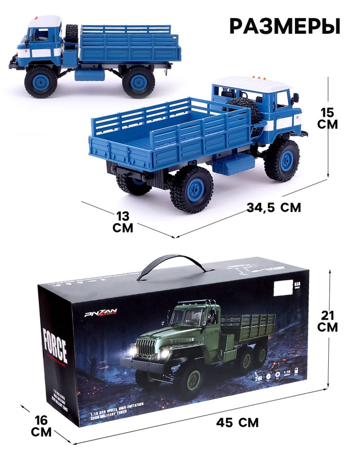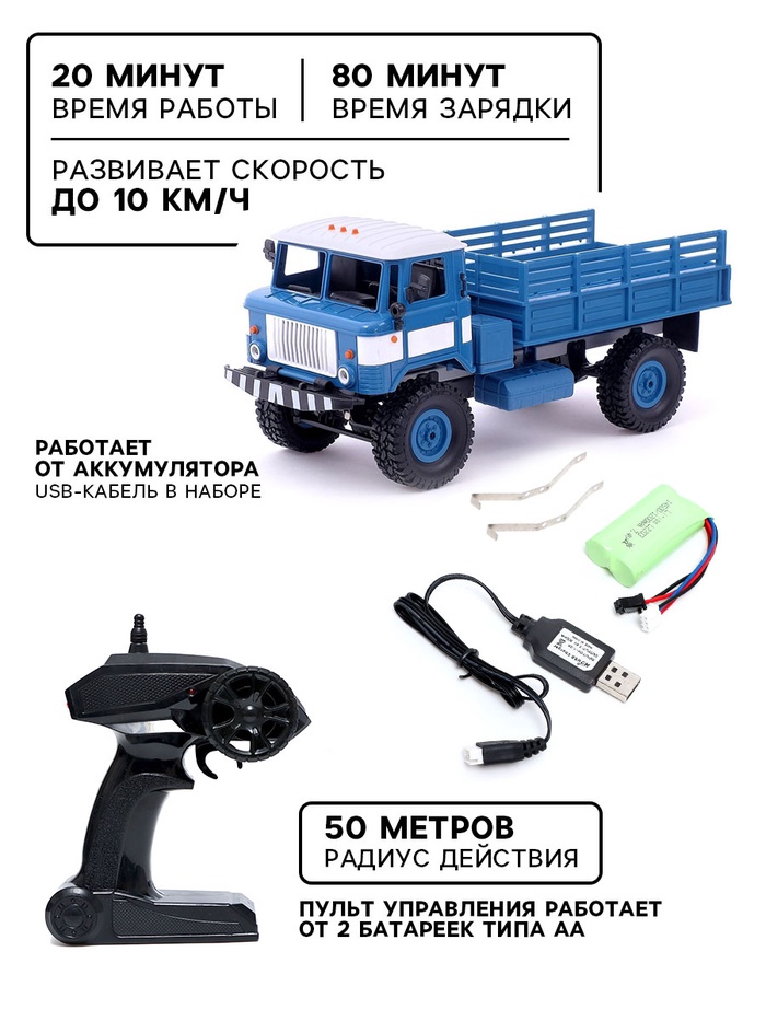 Радиоуправляемый грузовик «Газон» — это полноприводный грузовой транспорт, способный перевозить различные грузы и преодолевать бездорожье.