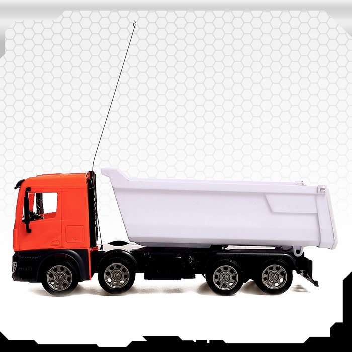 Подчиняясь командам с пульта, машина сможет ездить вперёд, назад, вправо и влево, освещая свой путь яркими фарами. Ребёнок придумает множество игровых сюжетов с мощной спецтехникой, будет перевозить грузы в кузове игрушки и даже устраивать гонки.