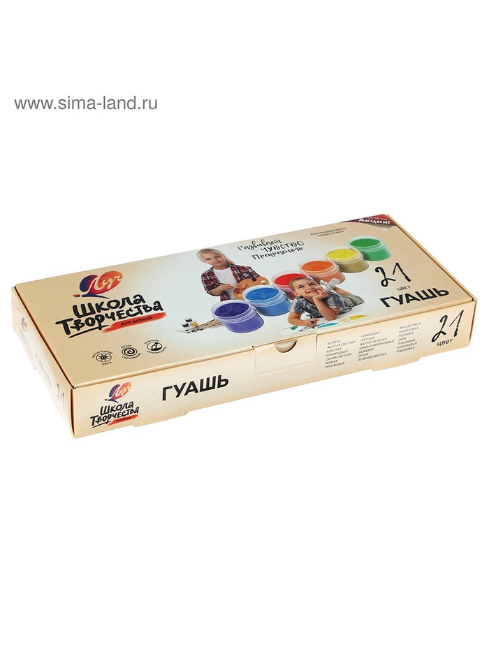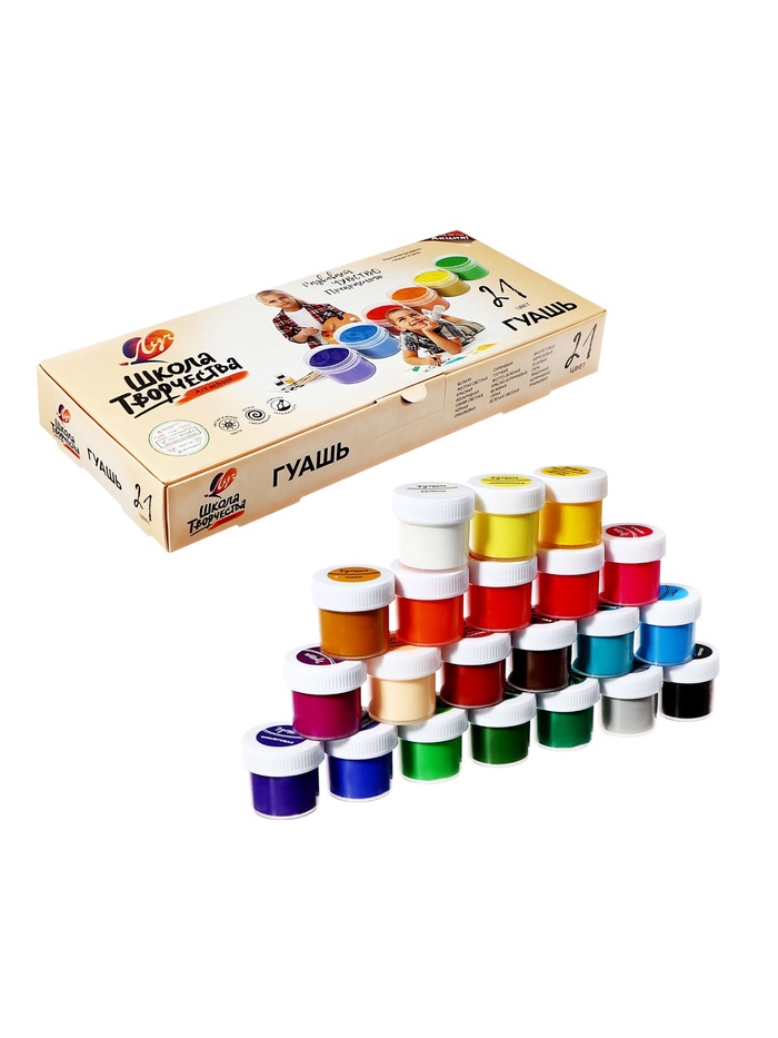 Гуашь "Школа творчества" изготовлена по улучшенной рецептуре. Благодаря этому цвета краски, не теряя своей яркости и красоты, стали максимально подготовлены для быстрого рисования. Краску не нужно предварительно сильно разбеливать и тратить при этом много белил. Благодаря меньшему расходованию белил из набора, цвета красок теперь будут заканчиваться равномерно, что позволит использовать набор более рационально. При высыхании краска не выцветает, приобретает бархатистую поверхность, имеет отличную укрывистость. Гуашь легко смывается с рук и одежды. Не имеет неприятного запаха. Абсолютно безопасна для детского творчества.