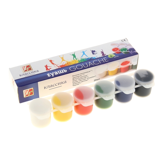 Гуашь 6 цветов × 20 мл «Классика», блок-тара поможет вашему ребёнку создавать красивые яркие картинки, выдумывать невероятные сюжеты и воплощать их в реальность, развивая цветовое восприятие, зрительную память, воображение, мелкую моторику пальцев, ассоциативное, аналитическое и творческое мышление.