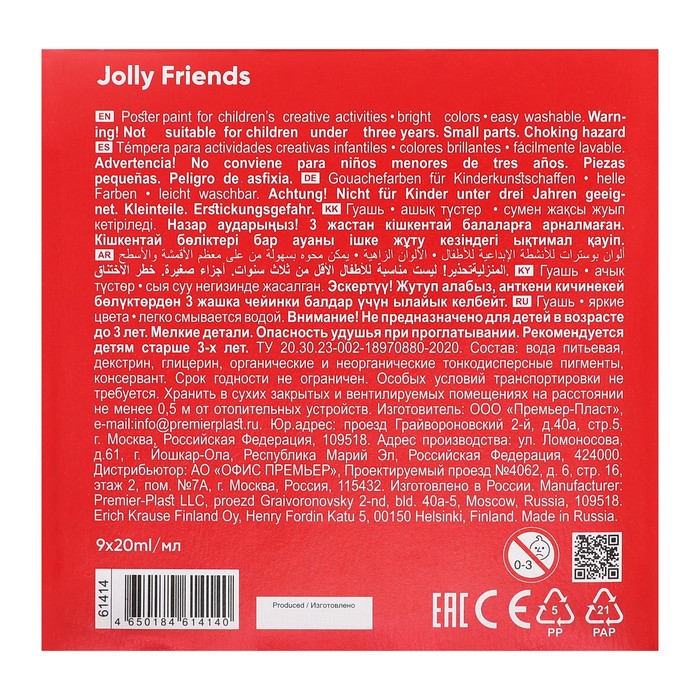 Гуашь ErichKrause отличает высокая кроющая способность краски. Цвета насыщенные, глубокие, отлично перекрываются и образуют экстра матовую бархатистую поверхность по мере высыхания краски. При этом сохраняется яркость и насыщенность тона, краски ложатся ровно, не осыпаются. Хорошо разводится и размывается водой, легко набирается на кисть.