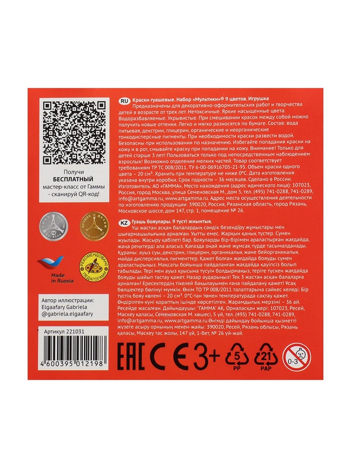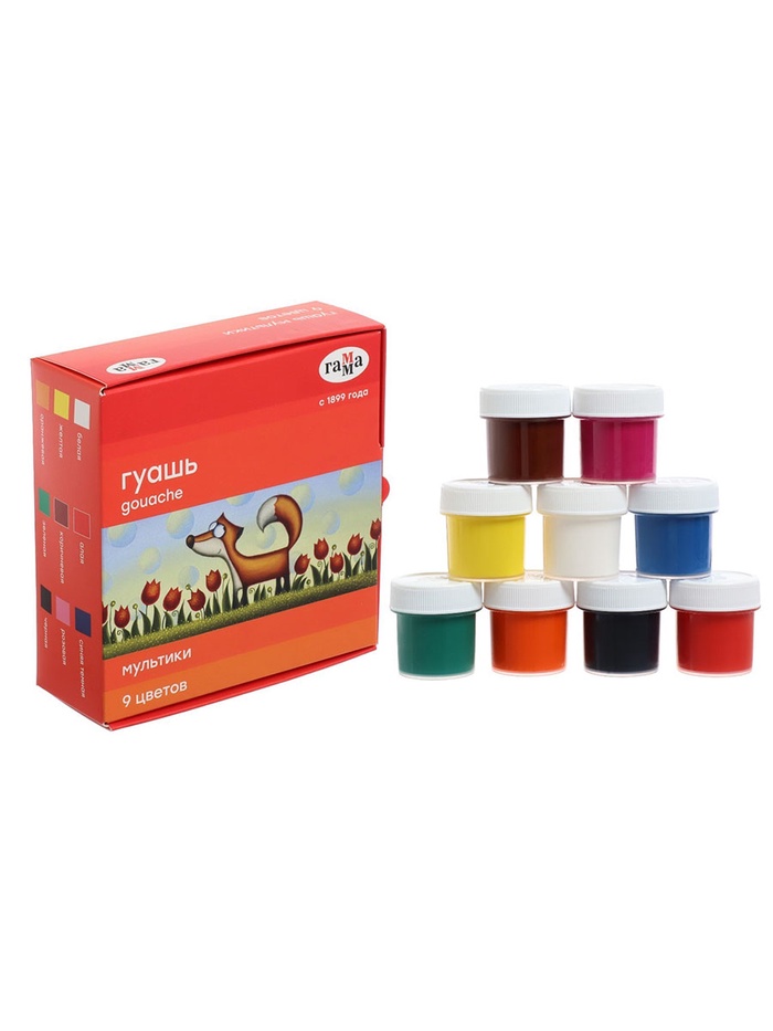 Гуашь 9 цветов × 20 мл «Гамма. Мультики» поможет вашему ребёнку создавать красивые яркие картинки, выдумывать невероятные сюжеты и воплощать их в реальность, развивая цветовое восприятие, зрительную память, воображение, мелкую моторику пальцев, ассоциативное, аналитическое и творческое мышление.