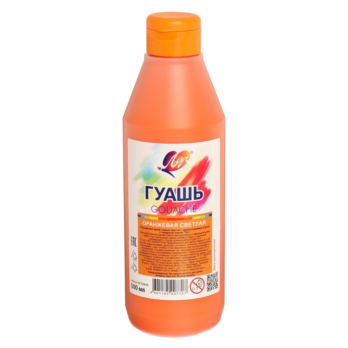 Гуашь на основе натуральных компонентов и высококачественных пигментов. Укрывистая текстура красок хорошо смешивается, равномерно наносится практически на любую основу, при высыхании не выцветает, приобретает бархатистый эффект. Из-за большого объема в 500мл гуашь идеально подходит для групповых тематических занятий в детских садах и школах. Благодаря удобной герметичной крышке краска защищена от высыхания. Гуашь легко смывается с рук и одежды. Не имеет неприятного запаха. Абсолютно безопасна для детского творчества.