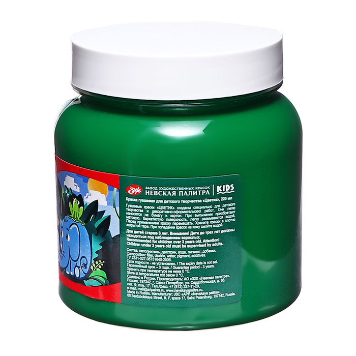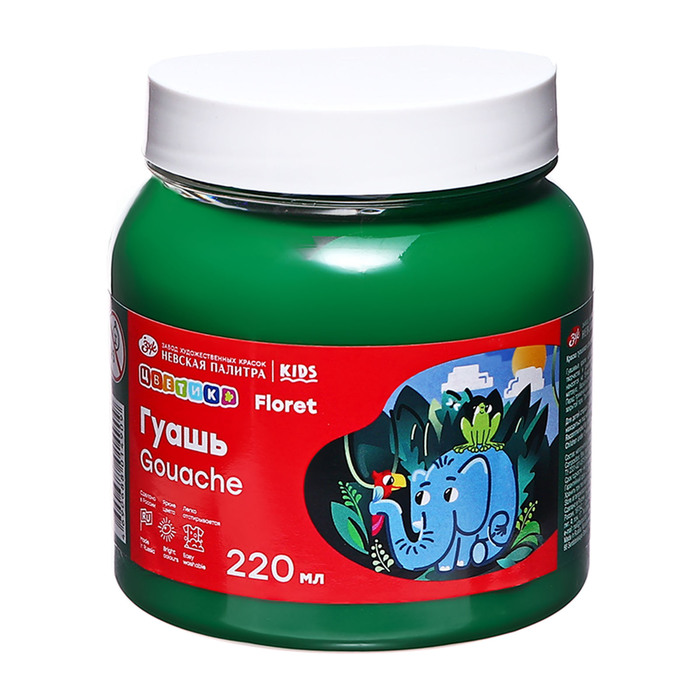 Отличительная особенность гуаши "Цветик" - яркие и насыщенные цвета. Легко отмывается с поверхности. Сохраняет цвет после высыхания, приобретает бархатистую текстуру. При нанесении толстым слоем не растрескивается. При разведении водой приобретает свойства акварели – ложится полупрозрачным равномерным слоем. Большая банка идеальна для занятий с детьми в школах, садах и студиях.