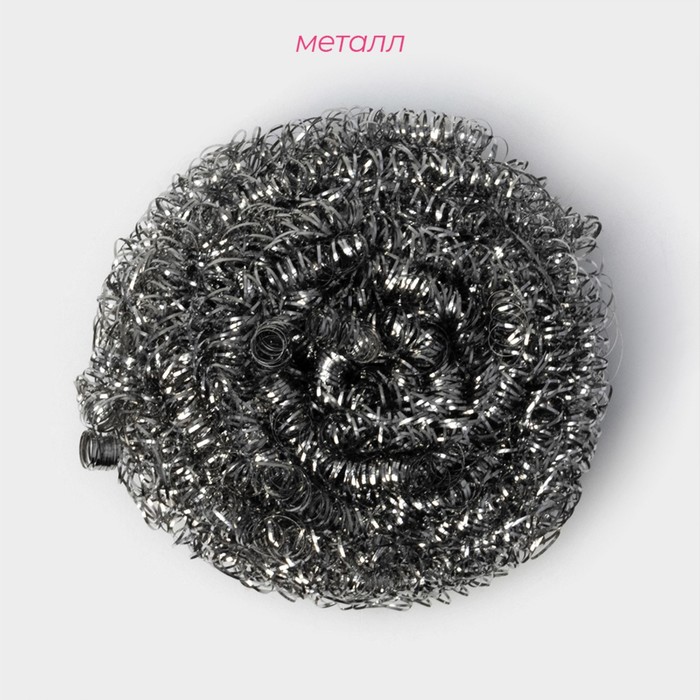 Ее серебристый цвет придаст вашей кухонной утвари элегантности, а прочный металлический материал обеспечивает долговечность и надежность в использовании. Наша губка идеально подойдёт как для мытья посуды, так и для очистки овощей, позволяя вам легко справляться с любыми сложными загрязнениями на разнообразных поверхностях.