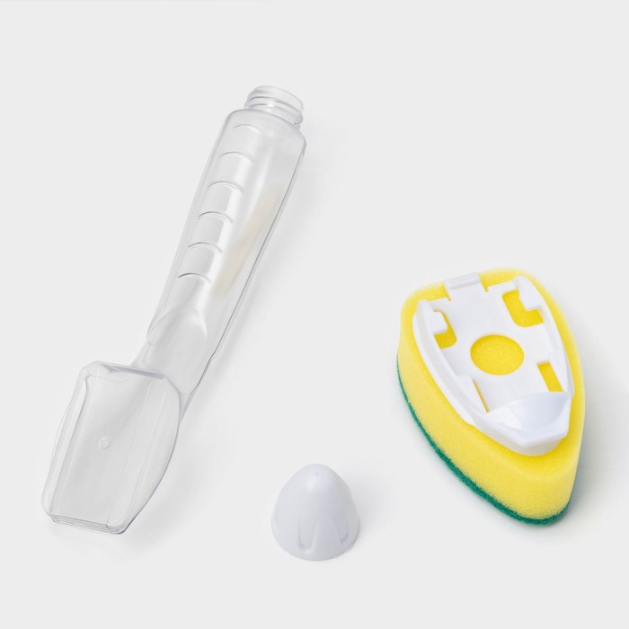 - Дозатор изготовлен из прозрачного пластика и позволяет легко контролировать наличие дозируемой моющей жидкости. Диспенсер уменьшает расход воды и жидкости для мытья посуды.