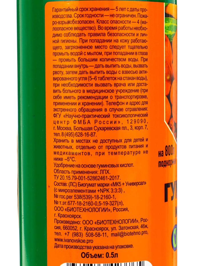 Состав: массовая доля солей гуминовых кислот — 6 %.