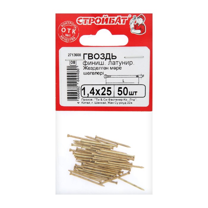Гвозди СТРОЙБАТ, финишные, ГОСТ 7811-7035, латунированные, 1.4×25 мм, 50 шт.