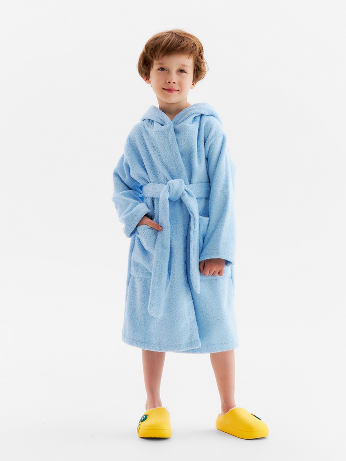 Халат легко стирается, быстро сохнет и сохраняет свою форму. Его можно использовать после купания, на пляже или дома, создавая уют и комфорт для вашего ребёнка.