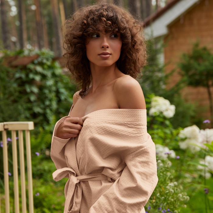 Халат вафельный женский удлинённый Экономь и Я размер 42-44, цвет бежевый, 100% хлопок, 200 г/м²