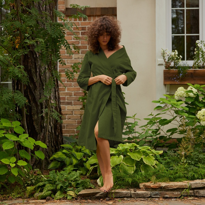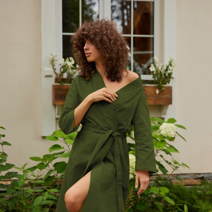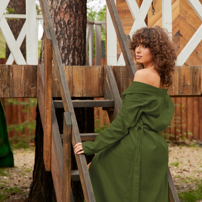 Халат вафельный женский удлинённый Экономь и Я размер 42-44, цвет хаки, 100% хлопок, 200 г/м²