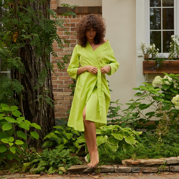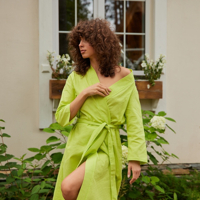 Халат вафельный женский удлинённый Экономь и Я размер 54-56, цвет салатовый, 100% хлопок, 200г/м2