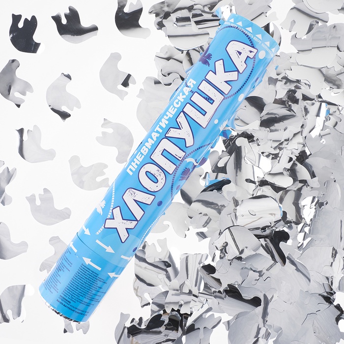 Хлопушка пневматическая "Голуби" фольга, серебро, металлик (12/30 см)