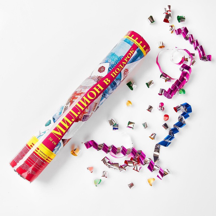 Как оригинально завершить поздравление, придать подарку по-настоящему взрывной характер? Решение есть: пневмохлопушка к вашим услугам. Она будет стрелять! Но не пугайтесь — серпантином, конфетти и фольгой. Приводится в действие поворотом специально обозначенной части за счёт сжатого воздуха.