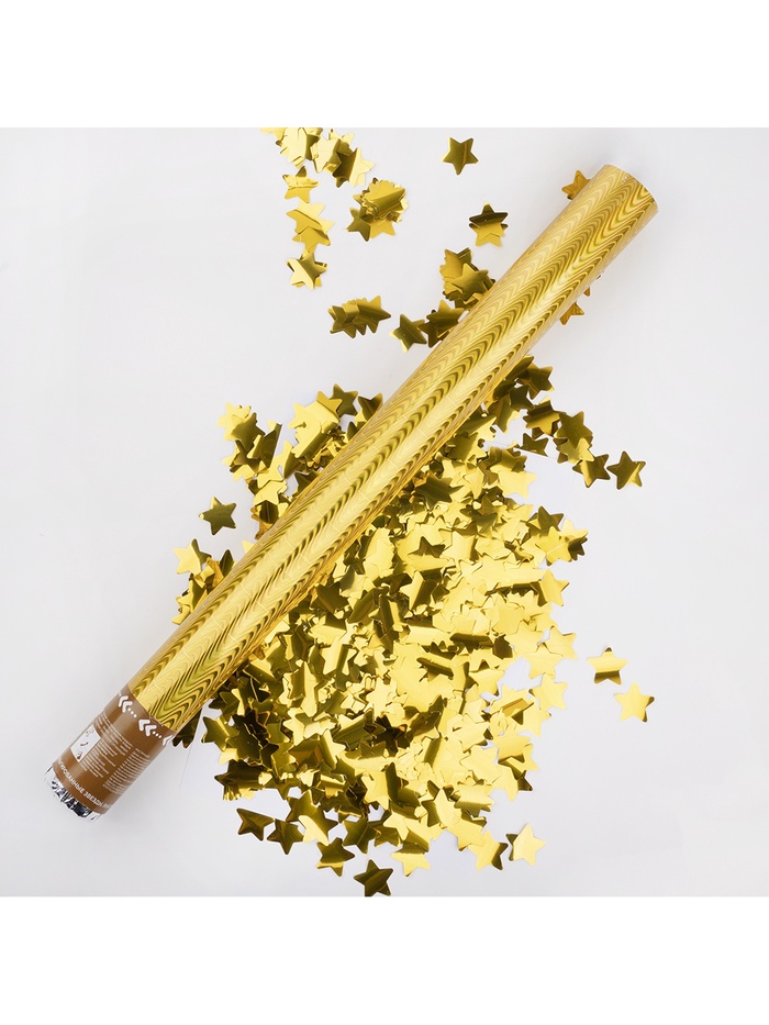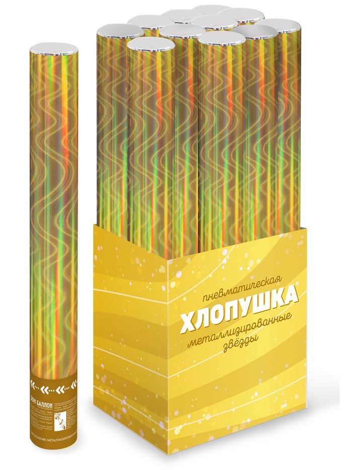 Хлопушка пневматическая "Волны, Звезды" фольга, золото, металлик (24/60 см)