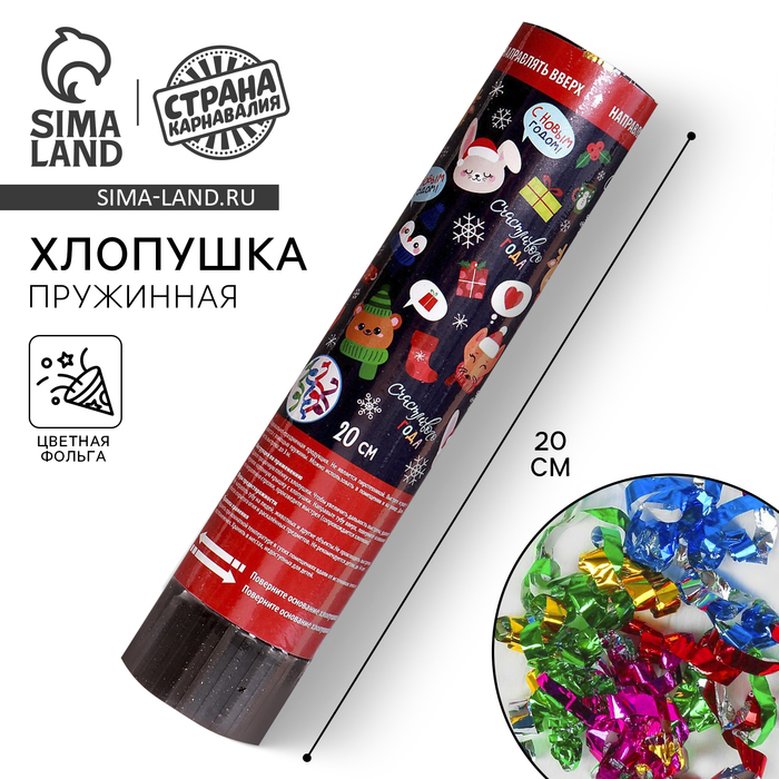 Хлопушка пружинная «Счастливого года», конфетти, фольга, поворотная, 20 см
