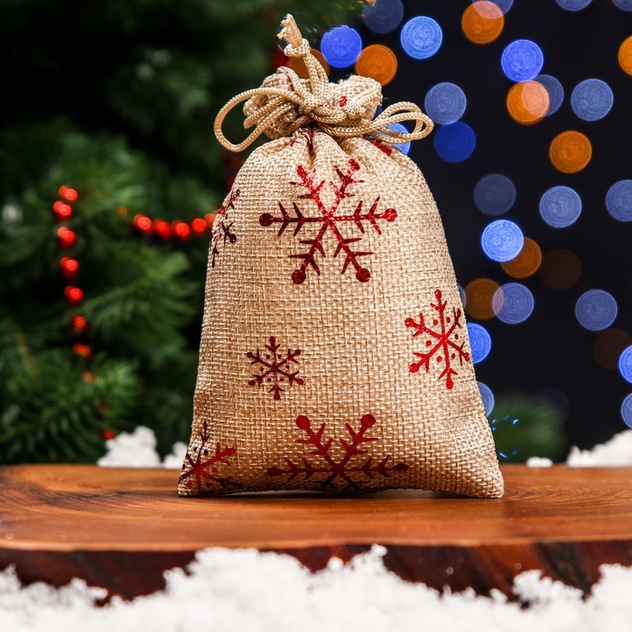 Упакуйте подарок с зимним настроением! Новогодний мешочек из холста «Снежинки» (10×14 см) — экологичная альтернатива традиционной упаковке. Натуральный текстиль с праздничным принтом создаёт особую атмосферу и подходит для многоразового использования.