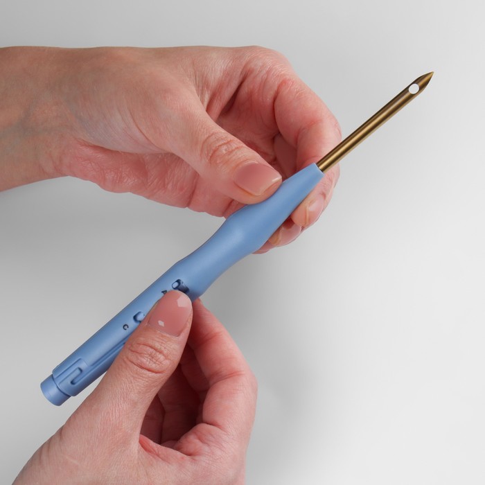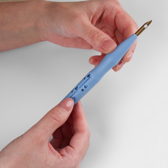 Игла для ковровой вышивки с нитевдевателем от Арт Узор включает ручку длиной 18,5 см и иглу диаметром 4,8 мм. Голубой цвет изделий помогает быстро находить инструмент среди материалов, а встроенный нитевдеватель облегчает заправку нитей, ускоряя подготовку к работе.