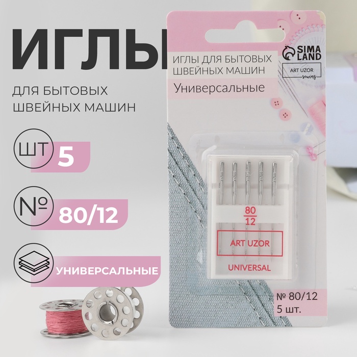 Иглы для бытовых швейных машин, универсальные, №80/12, 5 шт.