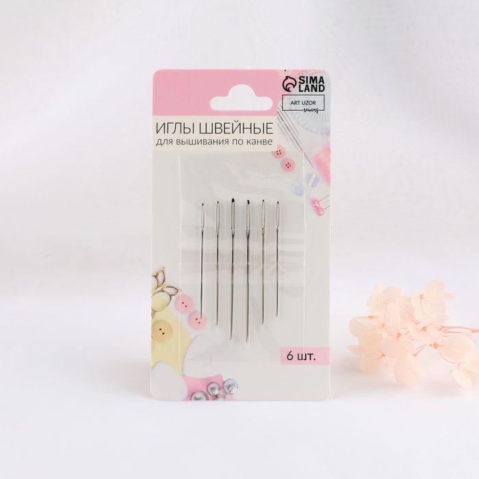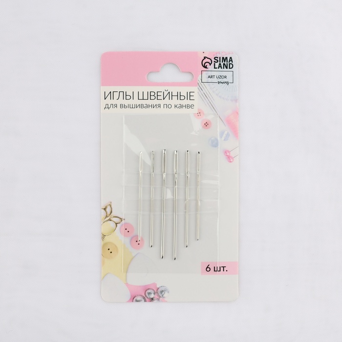 Рукодельницы, увлекающиеся вышиванием, по достоинству оценят набор иголок для вышивания по канве. Длинное позолоченное ушко значительно упрощает вдевание: оно идеально гладкое и не цепляет материал. В процессе шитья уменьшается нагрузка на нить, она меньше истирается. Остриё легко прокалывает полотно и позволяет проложить ровные стежки, также ушко позволяет легко продевать нить любой толщины или вставлять её в несколько сложений. Комплект из шести предметов позволит подобрать инструмент в соответствии с размером выбранных ниток.