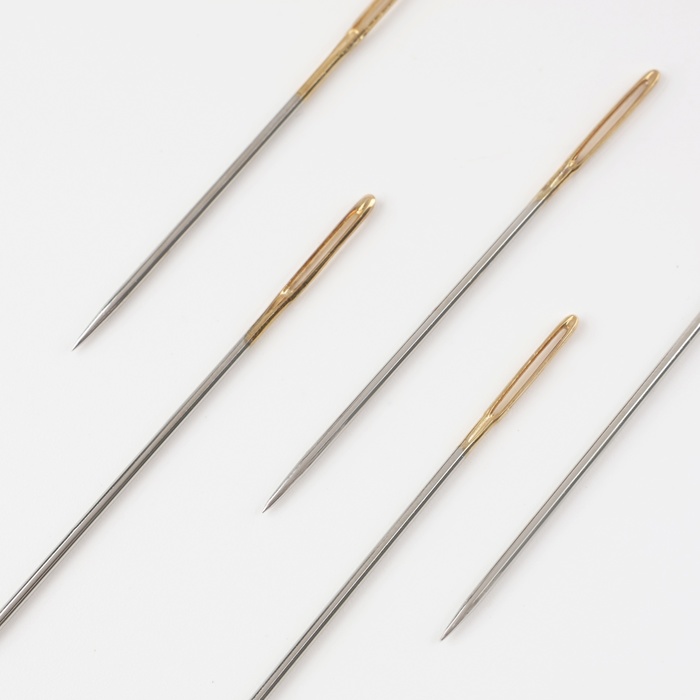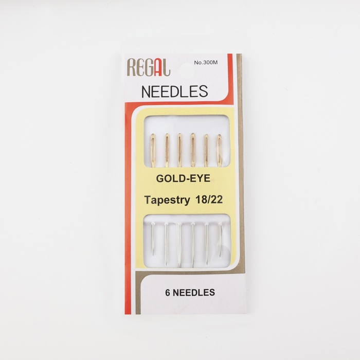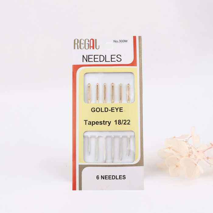 Шесть гобеленовых игл с позолоченными ушками созданы для объемной вышивки шерстью и другими толстыми нитями. Специальная конструкция №18/22 с увеличенным ушком упрощает работу с текстурированными материалами.