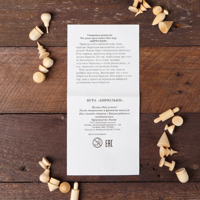 Бирюльки — игра с миниатюрными фигурками из дерева для тренировки ловкости и реакции у взрослых и детей.