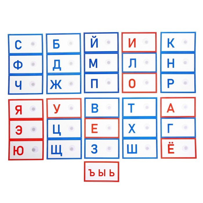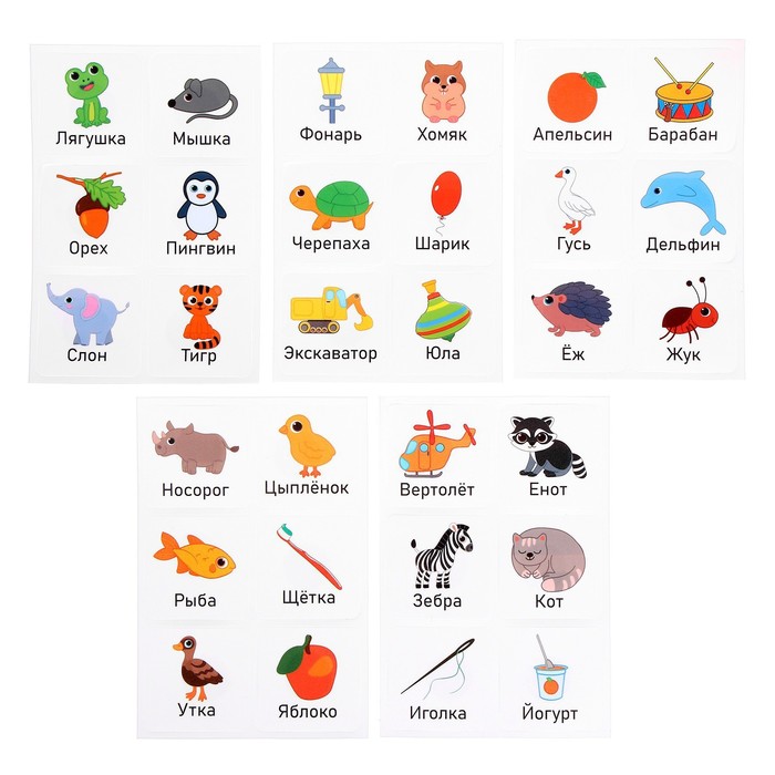 - Игра представляет собой набор карточек с буквами и тематическими картинками.