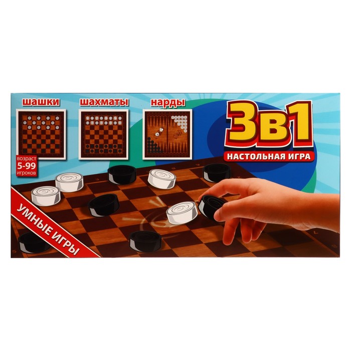 Игра настольная 3 в 1: шашки, шахматы, нарды