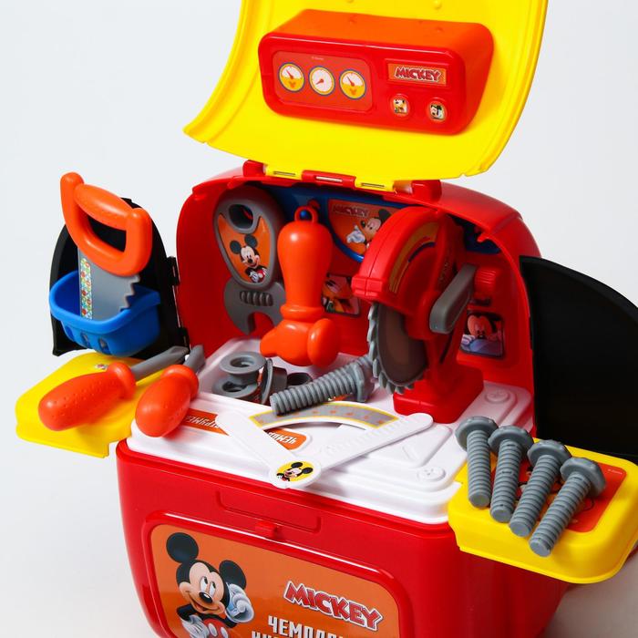 Стань настоящим мастером с Микки Маусом! Игровой набор 2в1: рюкзак и мастерская – это одна увлекательная игрушка, которая сочетает в себе удобство переноски и функционал мастерской. Всё хранится в пластиковом рюкзаке, который легко превращается в место для игр.