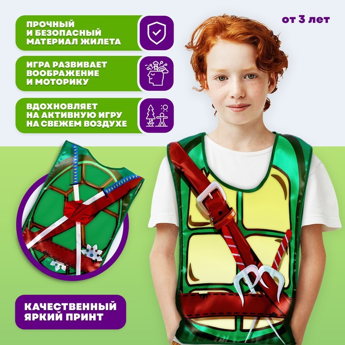 С набором «Ниндзя» малыш станет настоящим мастером боевых искусств и отправится в захватывающие приключения. Ребёнок освоит технику боя с нунчаками и клинками, а яркий стилизованный жилет позволит быстро вжиться в образ персонажа.