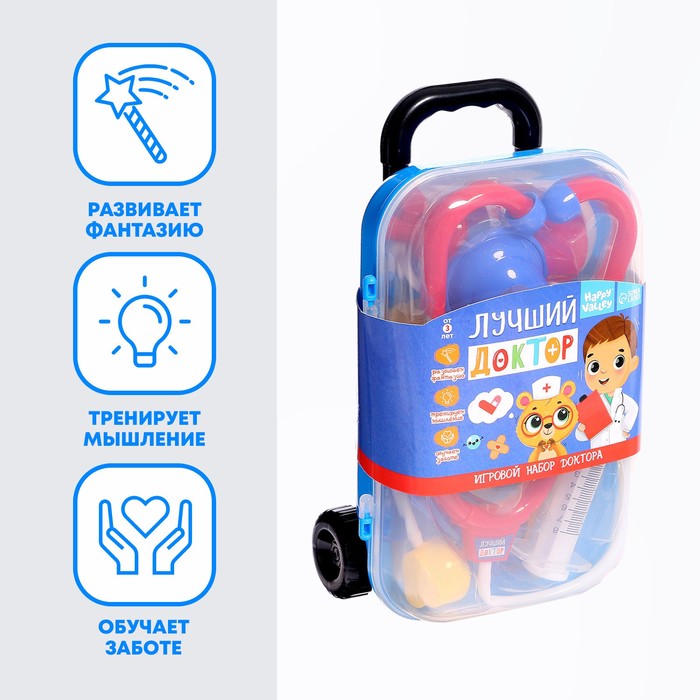 - медицинские инструменты; чемоданчик, в котором набор удобно брать с собой в гости, на прогулку или в путешествие.