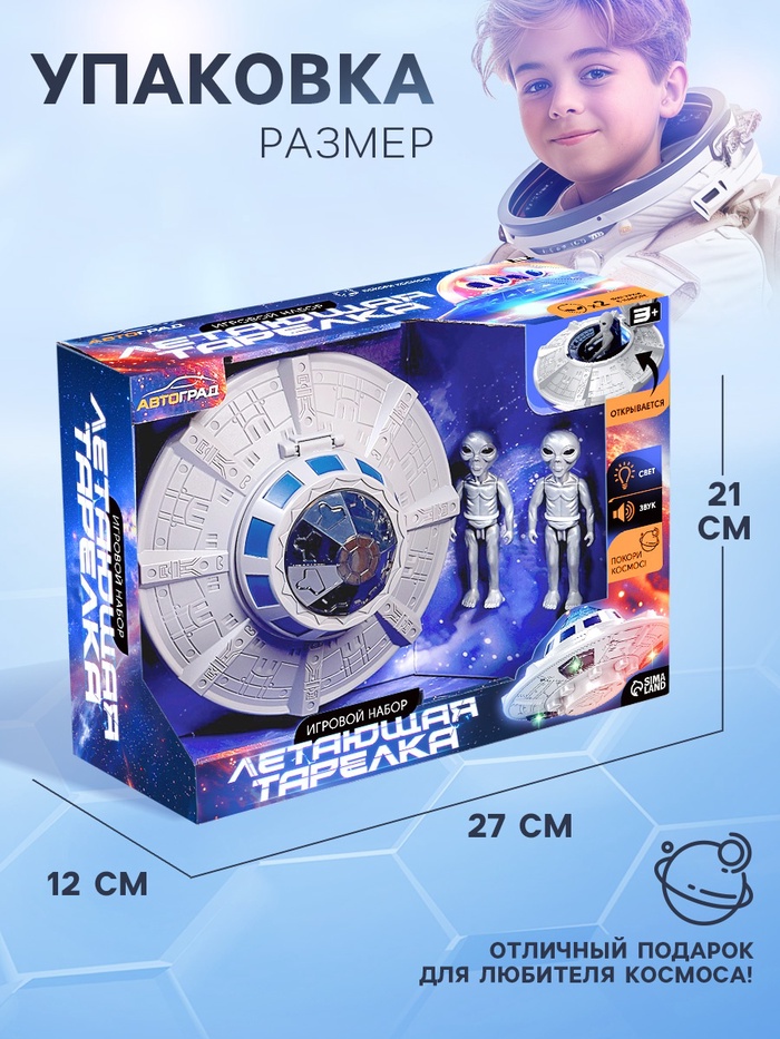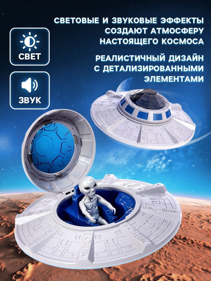 Этот фантастический набор подарит вашему ребёнку возможность отправиться в увлекательный мир космических исследований. Летающая тарелка с яркими световыми и звуковыми эффектами, а также фигурки инопланетян вдохновят на создание невероятных историй и ролевых игр.