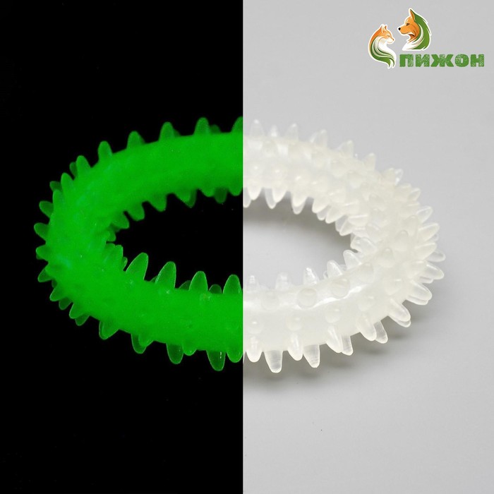 Игрушка для собак "Кольцо с шипами, светящаяся в темноте" - это уникальное развлечение для вашей собаки. Это кольцо светится в темноте, что делает игру с ней увлекательной. Шипы на игрушке помогают массировать десны вашей собаки и способствуют ее уходу за зубами. Эта светящаяся игрушка обогатит время, проведенное вашей собакой, делая его более интересным и активным.