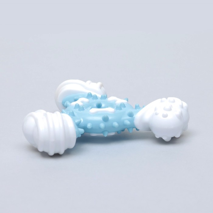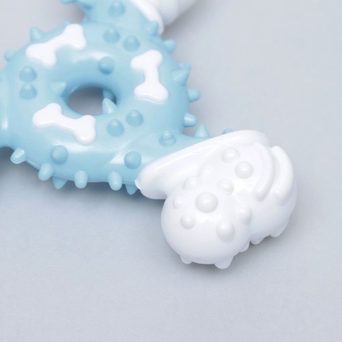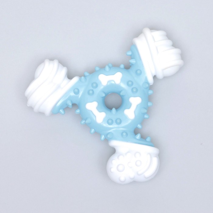 Игрушка двухслойная (твердый и мягкий пластик) "Кость-треугольник", 12 см, голубая