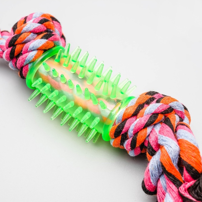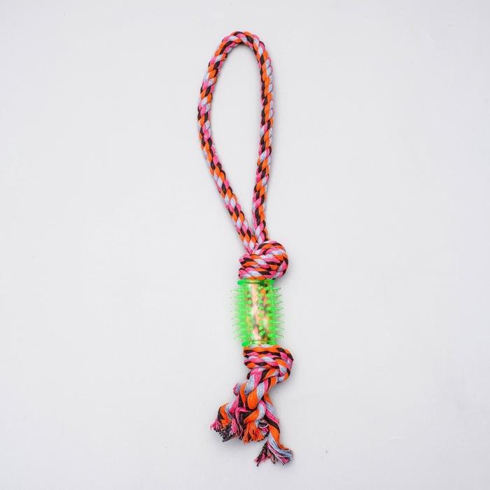 Идеальный тренажёр для здоровья зубов и весёлой игры! Игрушка для собак «Канат с зубочисткой» — это прочное и функциональное развлечение, которое помогает очистить зубы питомца и удовлетворить его природную потребность что-то грызть.