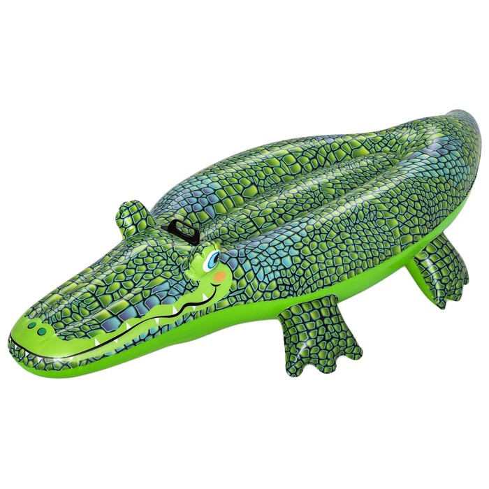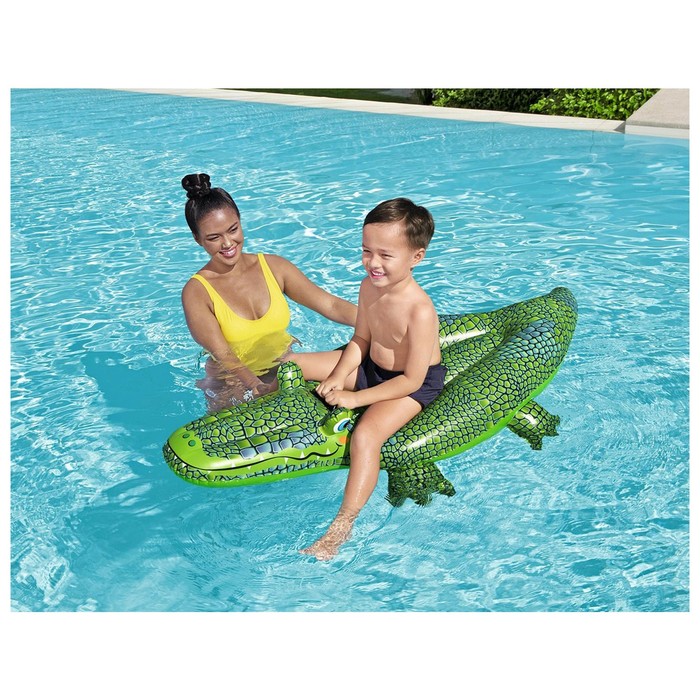 Надувная игрушка представляет собой плотик, на котором ребёнок может плавать в воде. Отличительная особенность — яркий дизайн в виде рептилии. Для большей безопасности модель оснащена пластиковой ручкой.