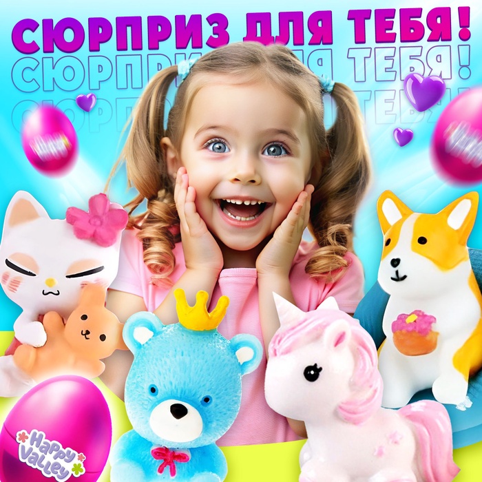 - Каждое яйцо содержит случайную игрушку-зверёнка