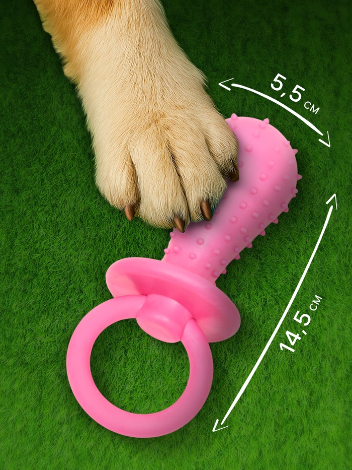 Игрушка жевательная "Пустышка для малышки", TPR, 14,5 см, розовая