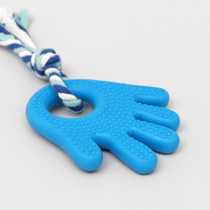 Подарите собаке игрушку-компаньона для активных игр и здоровья зубов! Жевательная игрушка-канат «Ладошка» — это прочное и безопасное изделие из термопластичной резины и текстиля. Она сочетает функции массажера для десен и веселого перетягивания, помогая поддерживать чистоту зубов и удовлетворять жевательный инстинкт питомца.