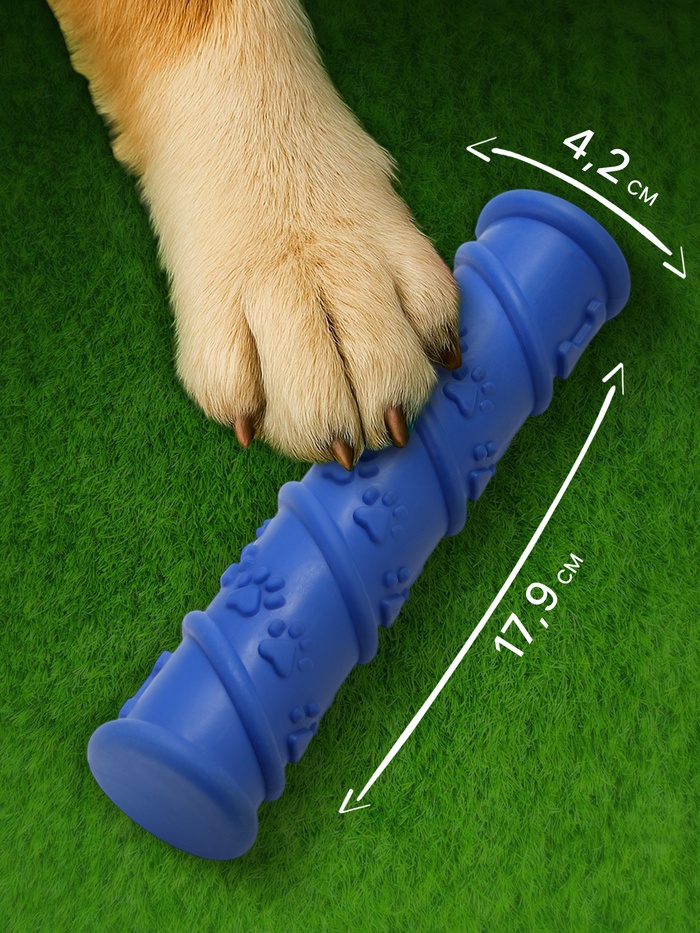 Размер: 17,9 см x 4,2 см — оптимальные габариты для удобства захвата лапами и зубами.