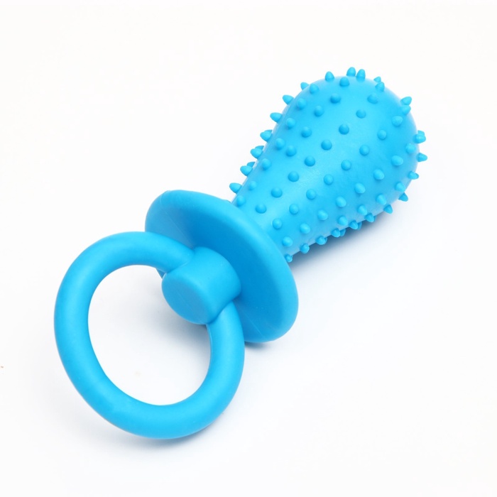 Подарите питомцу радость жевательной игры! Голубая жевательная соска из TPR — это эластичная и прочная игрушка для собак, которые любят грызть. Ее форма и материал создают приятные ощущения для десен и зубов питомца, помогая поддерживать гигиену полости рта.