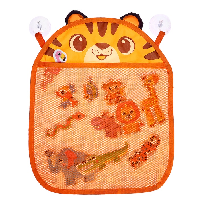 - Сетка с изображением тигрёнка крепится на надёжные присоски — для удобного размещения в ванной.
