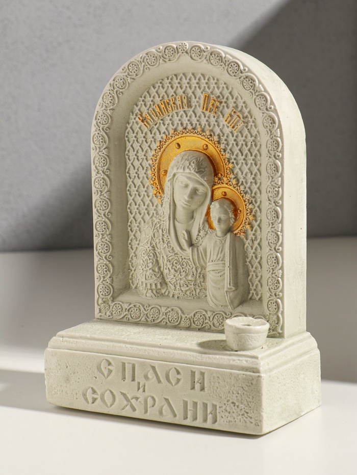 Икона с подставкой под свечу "Божья Матерь" гипс , роспись, 18х13х7 см