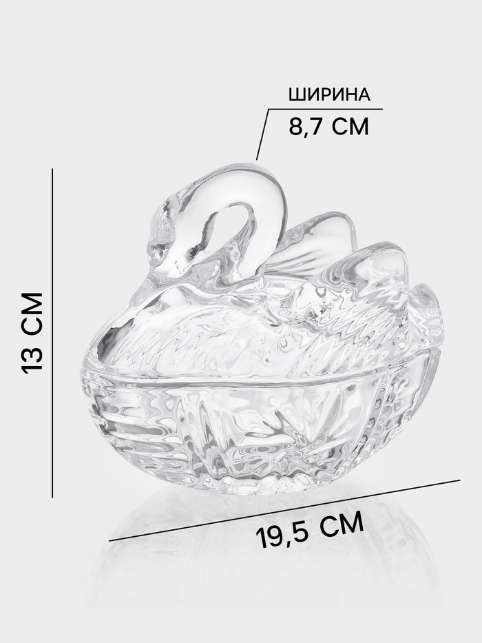 - Фигурная форма – лебедь: придаёт посуде выразительность и оригинальность, выделяет её в сервировке.