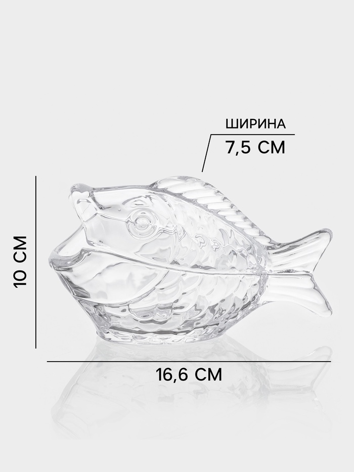 - Фигурная форма – рыба: придаёт посуде характер и запоминающийся образ, выделяет среди стандартных ёмкостей.
