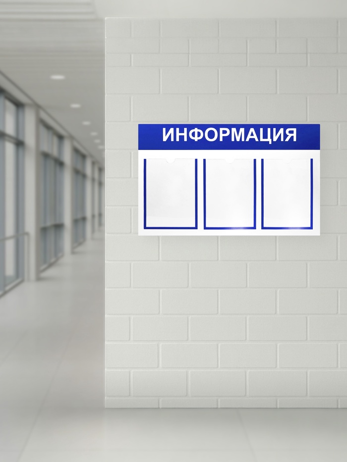 Облегчите доступ сотрудников и клиентов к важнейшей информации с помощью удобного синего стенда с тремя плоскими карманами формата А4. Его классический синий цвет ненавязчиво привлекает внимание, а доступные три ячейки позволяют удобно разместить документы и объявления, относящиеся к регламентирующим вопросам или внутренним распорядкам компании. Сделанный из долговечного ПВХ-материала, стенд обеспечивает четкость отображения и долгосрочную эксплуатацию в офисных и общественных помещениях.