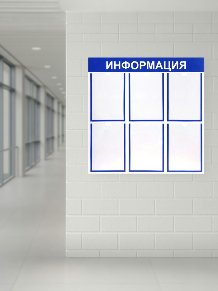 Информационный стенд «Информация» 6 плоских карманов А4, синий
